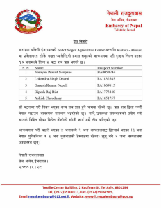 इजरायलस्थित नेपाली राजदूतावासले दिएको जानकारी अनुसार, नारायणप्रसाद न्यौपाने, लोकेन्द्र सिंह धामी, गणेशकुमार नेपाली, दिपेसराज विष्ट र अविनाश चौधरीको शव प्राप्त भएको छ ।